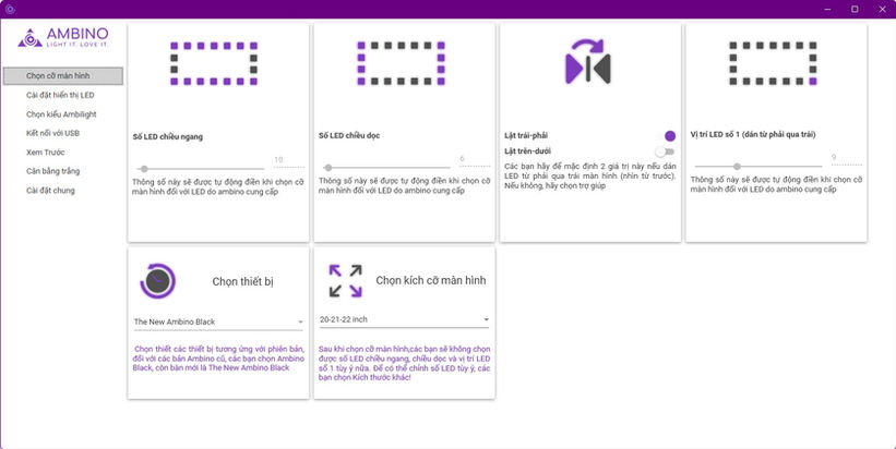 App Adrilight dùng để điều khiển các thiết bị trên PC của Ambino ở phiên bản cập nhật này có những thay đổi như sau: